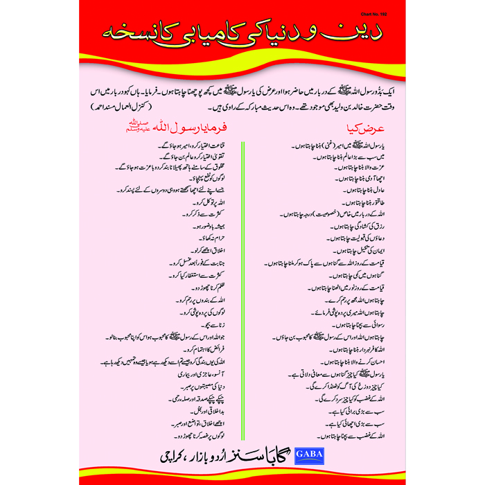 Chart No 192 (دین و دنیا کی کامیابی کا نسخہ)