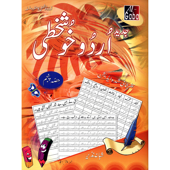 گابا اردو خوشخطی کا نظرِ ثانی ایڈیشن جماعت پنجم کے لئے نہایت مفید ثابت ہوگا۔ اس منفرد اور جاذب نظر ایڈیشن کی تیاری میں اس بات کا خاص خیال رکھا گیا ہے کہ انگریزی اور اردو میڈیم اسکولوں کے بچّے اس سے خاطر خواہ فائدہ حاصل کر سکیں ۔ بچّوں کو حُروف روشناس کرانے کے لئے ہر صفحے پر ایک لائن سکھانے اورباقی مائندہ لائنیں سیکھنے اور مشق کرنے کے لئے چھوڑ دی گئی ہیں تاکہ طلباء حُروف تہجّی ، الفاظ اور جملوں کو ذوق و شوق کے ساتھ پڑھ بھی لیں اور آسانی سے لکھنا بھی سیکھ سکیں۔