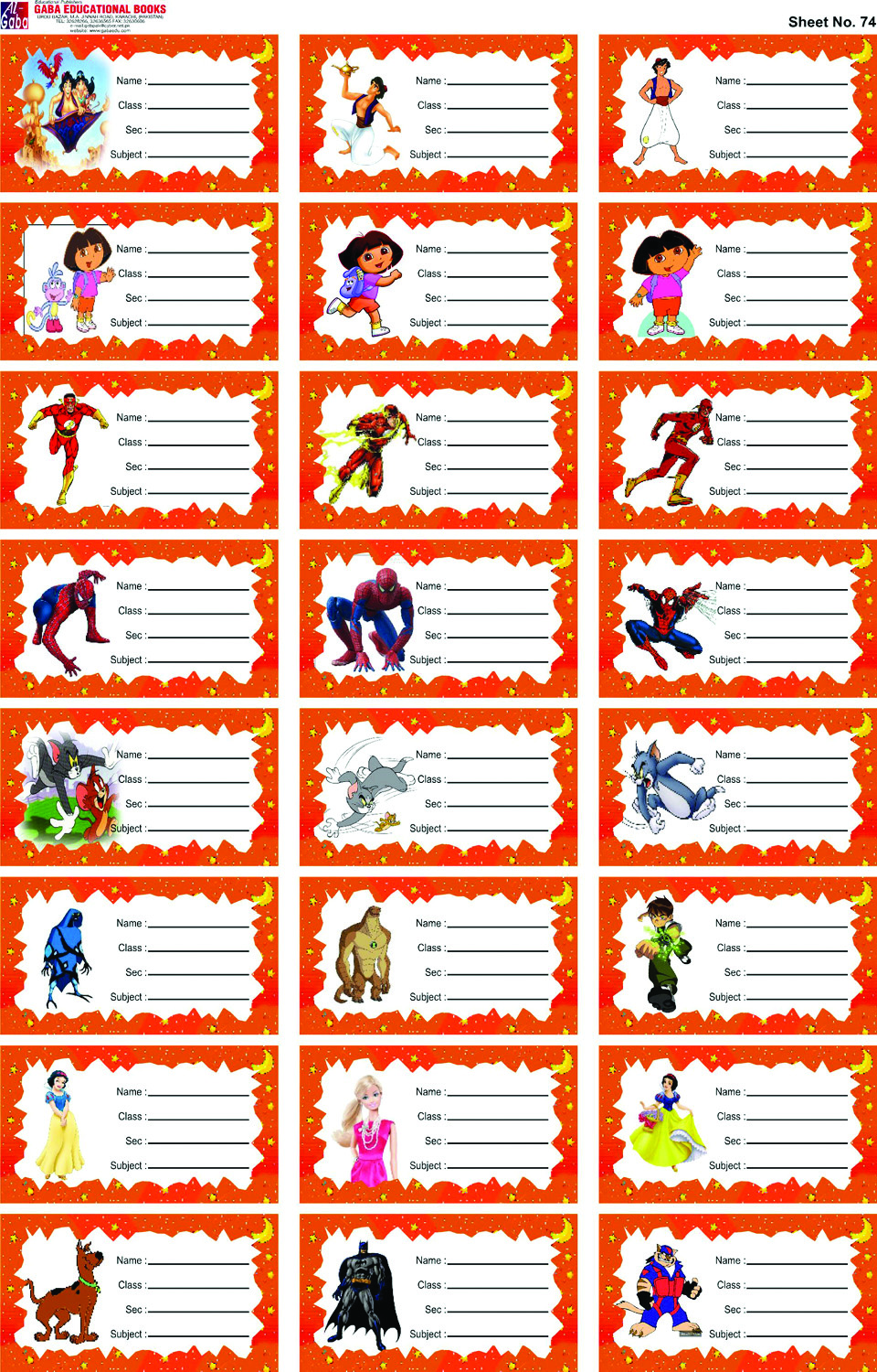 Sheet No 74 (Cartoon Sticker)